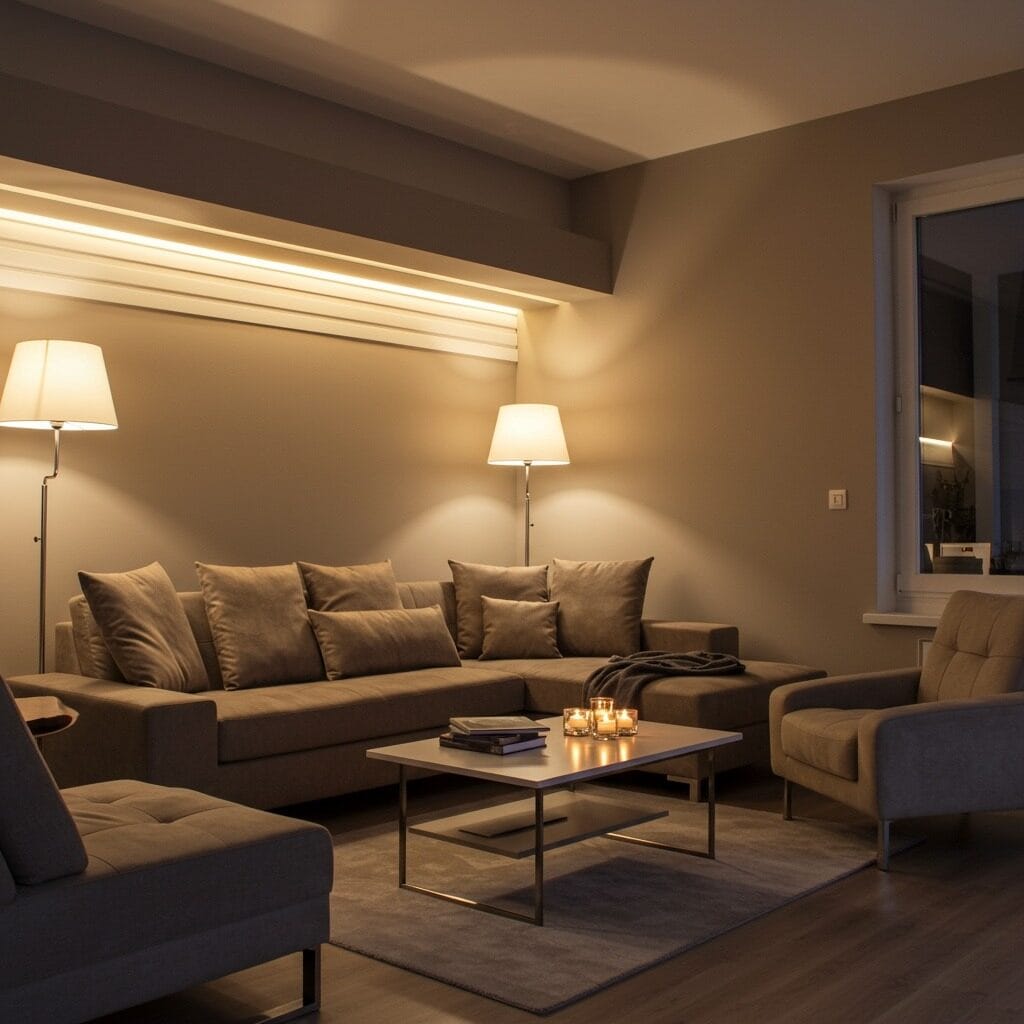 Consider installing dimmer switches throughout your room to adjust brightness levels easily. Contemporary spaces need flexibility – bright task lighting for reading, soft ambient lighting for entertaining, and accent lighting to highlight architectural features or artwork.