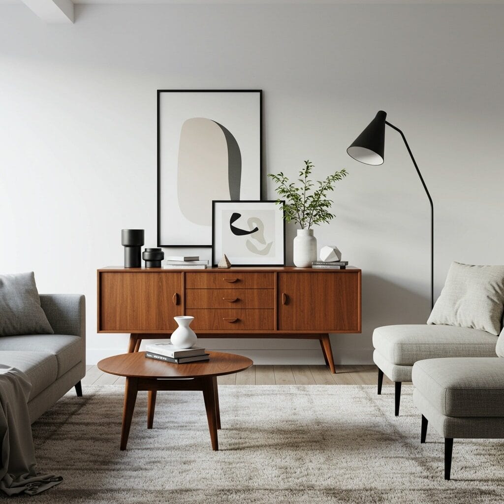 Mid-century modern pieces blend seamlessly with contemporary design, adding character and warmth to otherwise sleek spaces. A vintage-inspired credenza, iconic Eames chair, or brass accent pieces can elevate your room instantly.
