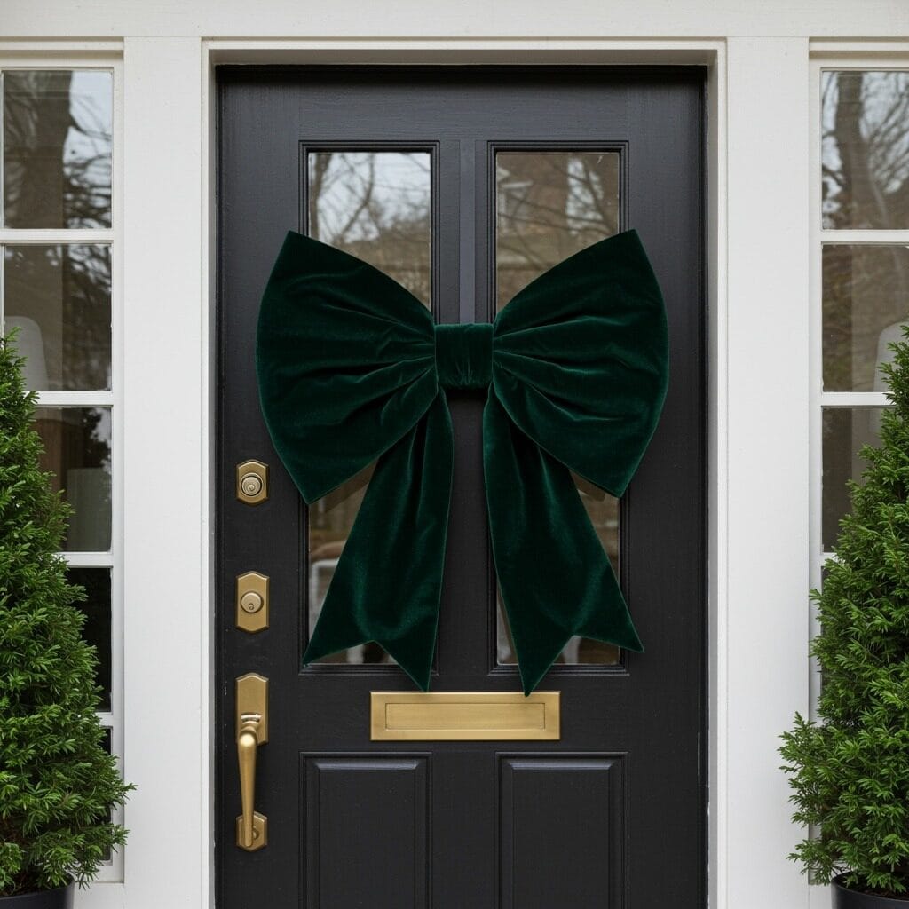 Skip the traditional wreath and create a show-stopping velvet bow that commands attention. Use rich burgundy or forest green velvet ribbon, creating generous loops that measure at least 12 inches across. The key is proportion – go bigger than feels comfortable, then add a trailing cascade of coordinating ribbons in varying textures.