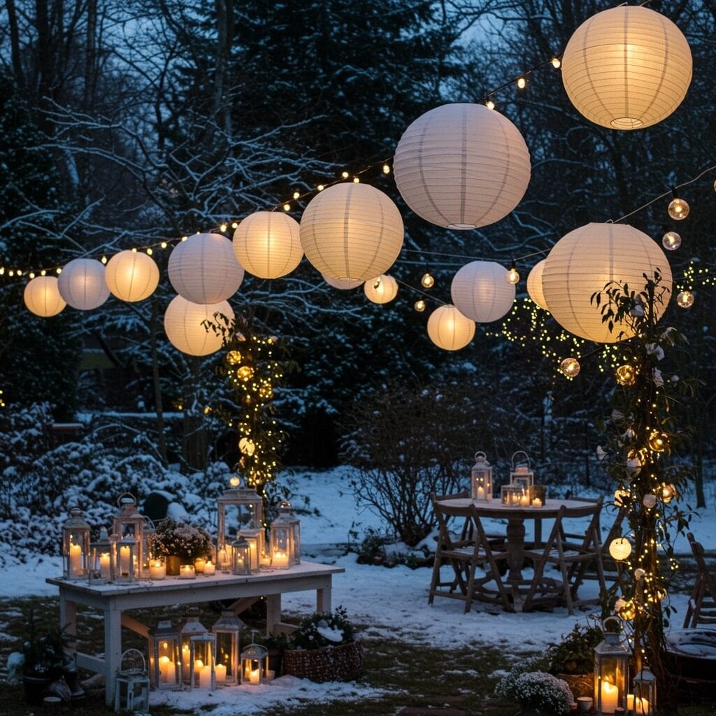 Create impressive outdoor lighting using large paper lanterns wrapped in battery-operated string lights. Choose weather-resistant materials and secure thoroughly for winter wind conditions. Group them in clusters of three to five near your outdoor coffee table or along pathways.