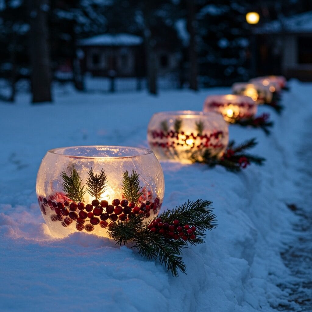 These work beautifully along walkways or clustered on outdoor dining tables for winter entertaining. As they slowly melt, they create evolving art pieces. Have backup LED candles ready as the ice melts throughout the evening.
