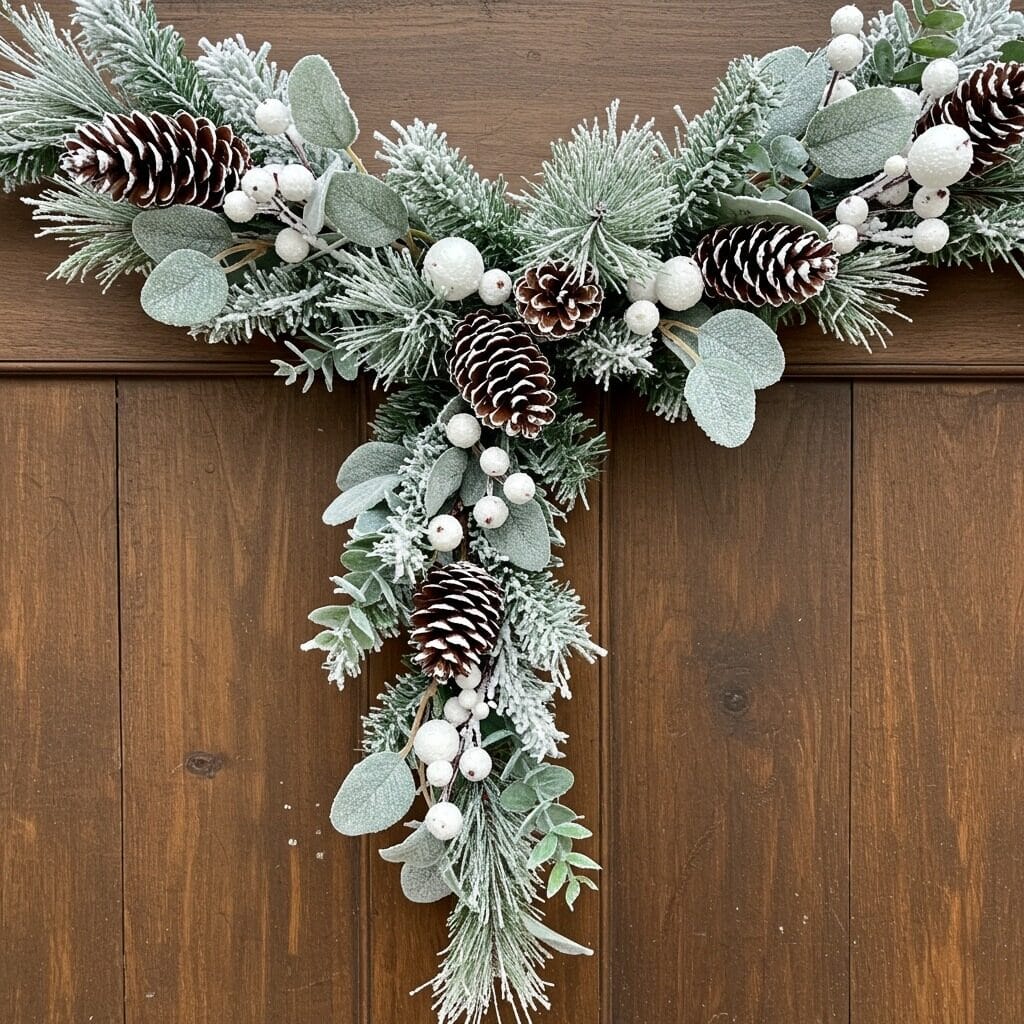 Transform ordinary pinecones into sophisticated winter decor with this simple frosting technique. Dip large pinecones in white craft paint mixed with coarse salt, creating a realistic snow effect that catches light beautifully. String them onto invisible fishing line with clusters of white berries and eucalyptus sprigs.