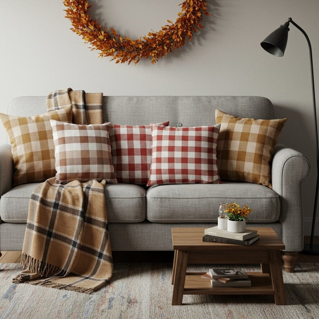 Transform your living room ideas with cozy plaid textiles that instantly warm up your space for the season. Layer different plaid patterns in complementary colors – think warm reds, deep oranges, and golden yellows that echo the changing leaves outside.