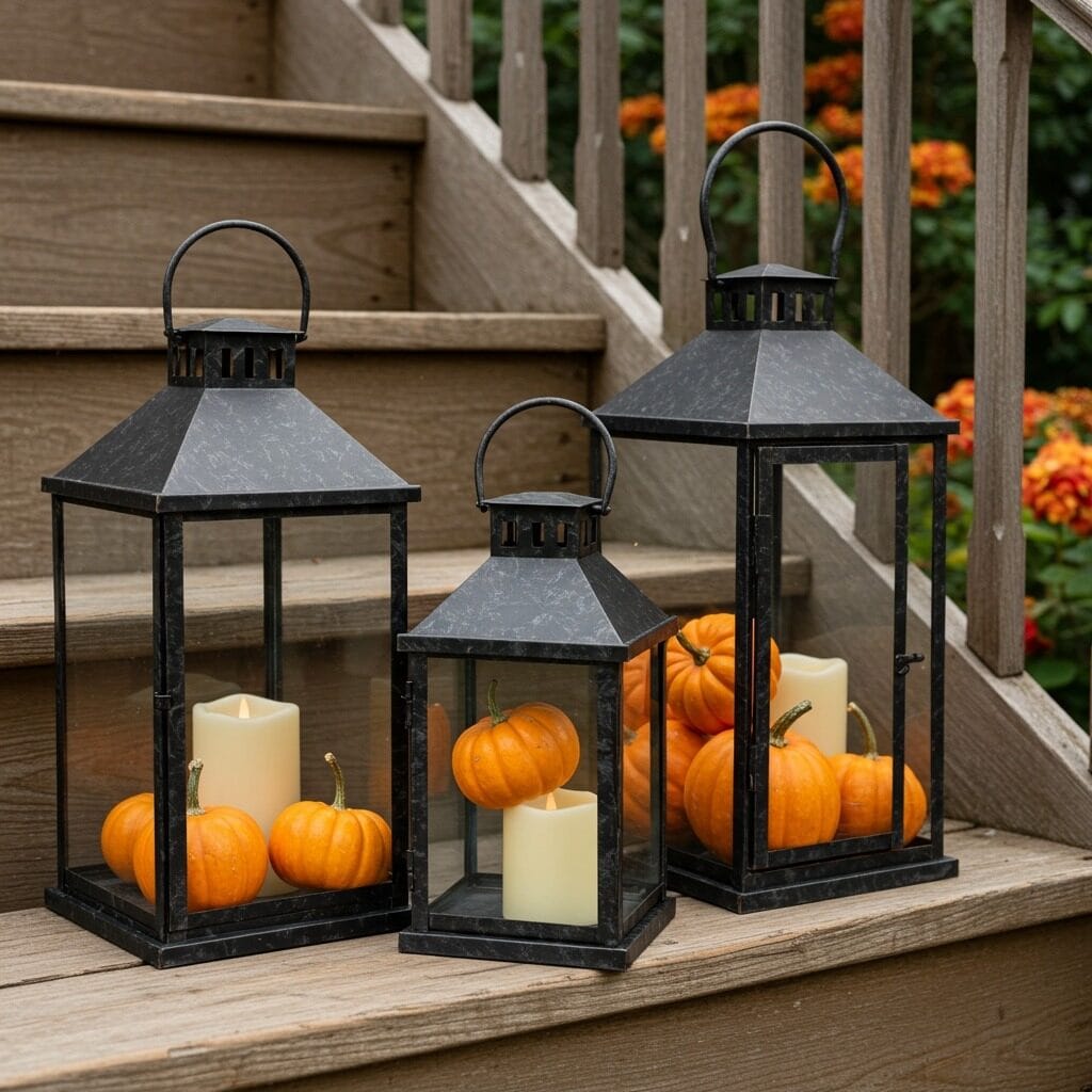 Group vintage-style lanterns of different sizes and finishes to create warm, inviting lighting displays throughout your home. Fill some with battery-operated candles for safety, while others can hold seasonal elements like mini pumpkins, pine cones, or even strings of cranberries.