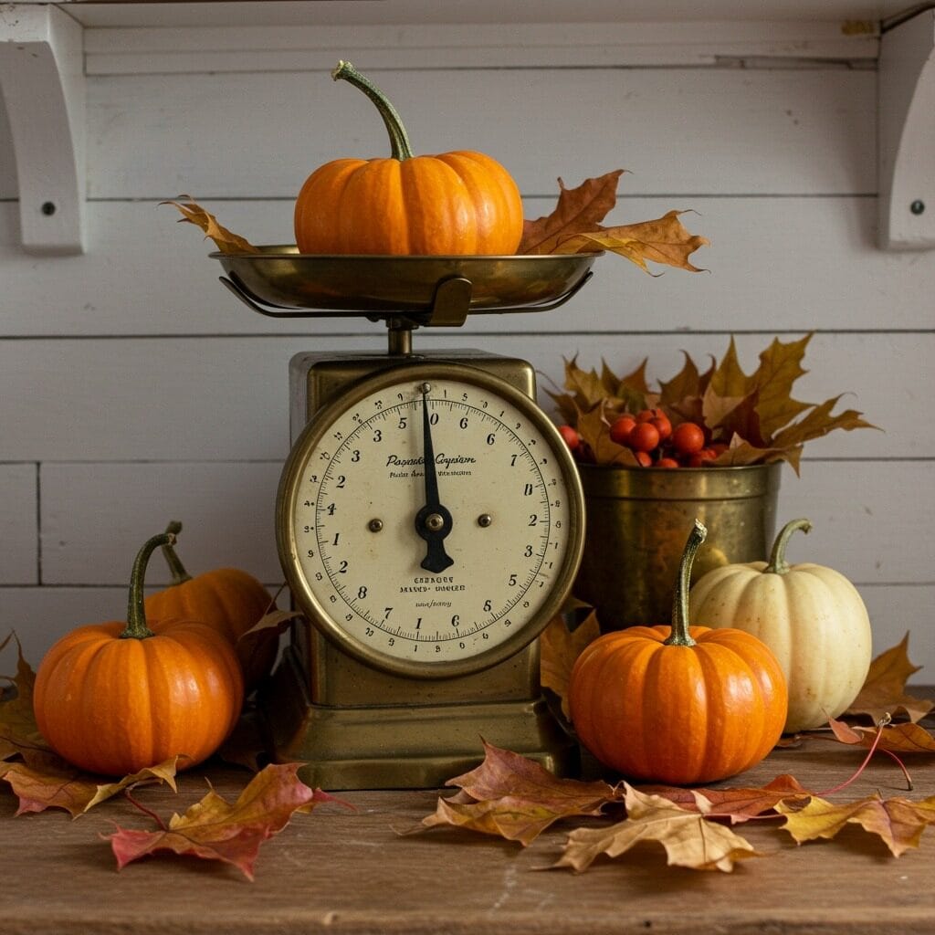 This type of display works because it tells a story about the harvest season and connects to the agricultural roots of farmhouse design. The combination of aged metal, natural pumpkins, and the suggestion of weighing the harvest creates authentic seasonal charm. Position your scale display on a kitchen island, dining room sideboard, or even as part of a larger kitchen counter decorating ideas scheme where it can serve as both decoration and conversation starter.
