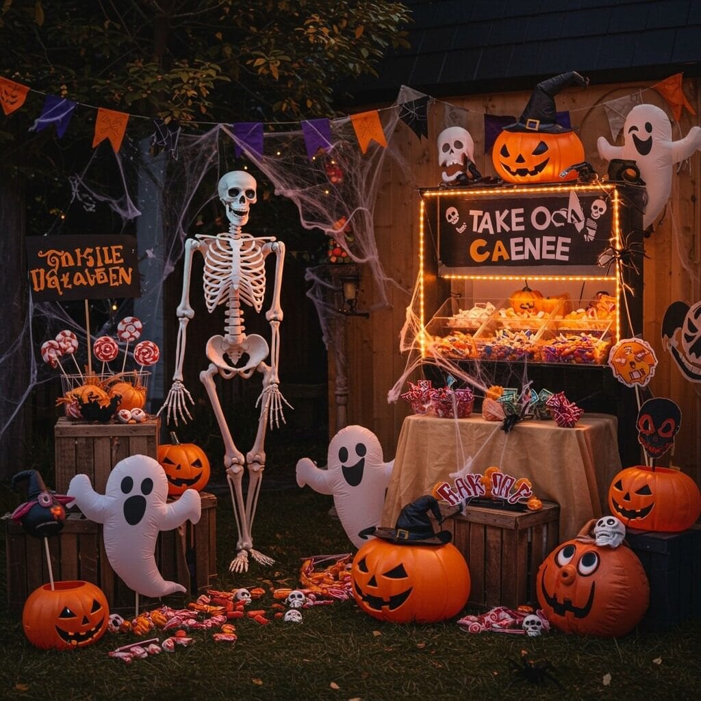 Consider interactive elements like a small photo booth area with Halloween props, or a “guess how many candy corns” jar that engages kids while they wait at your door. These DIY Halloween decorations ideas often become the most memorable part of the experience.