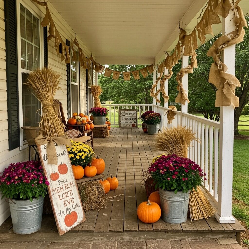 Don’t forget about incorporating plaid patterns – buffalo check in orange and black, or traditional fall plaids in rust and cream colors work beautifully. This style easily transitions from Halloween through Thanksgiving with just a few tweaks.