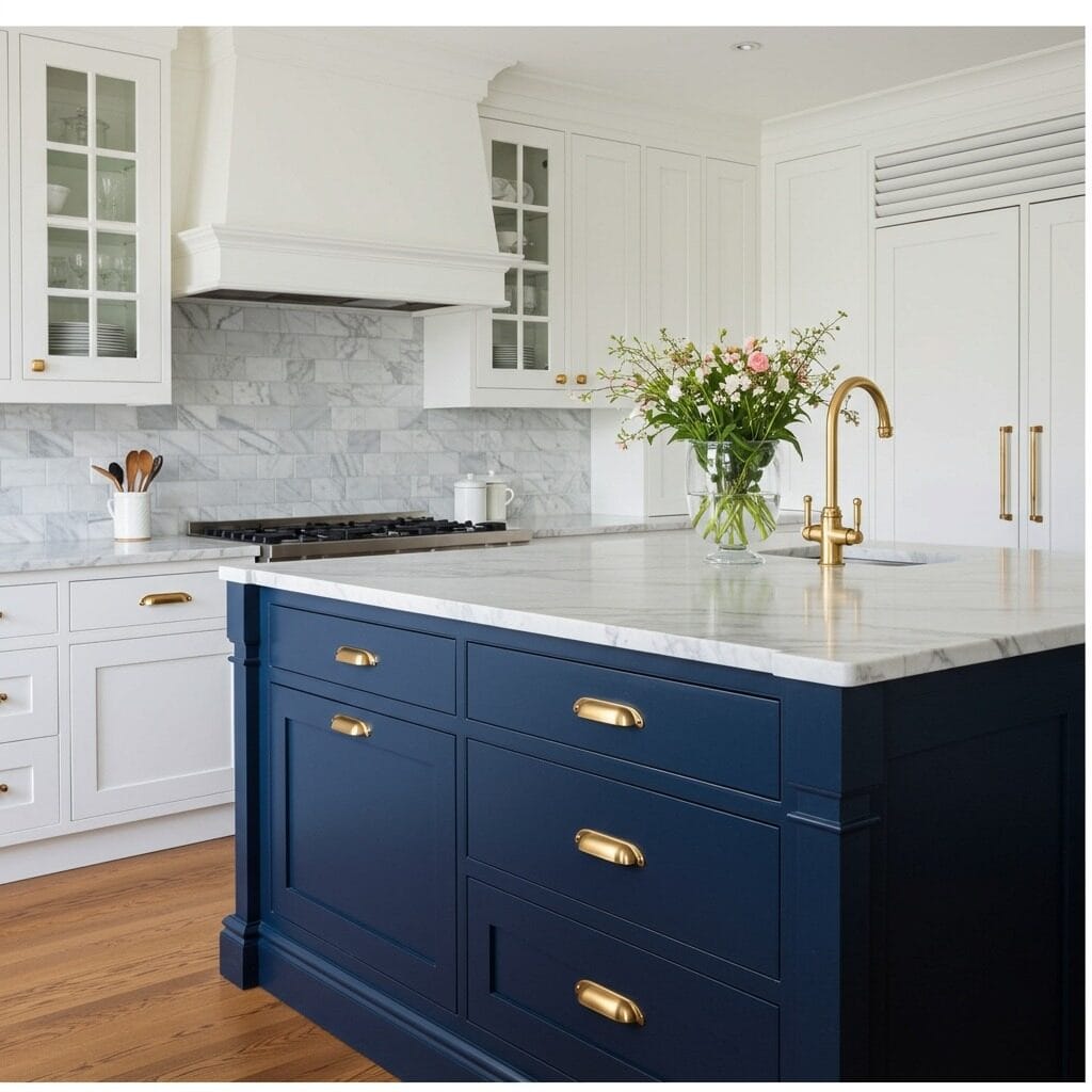 This approach lets you experiment with color without committing to painting your entire kitchen. You can change the island color more easily than replacing all your cabinets if your taste evolves.