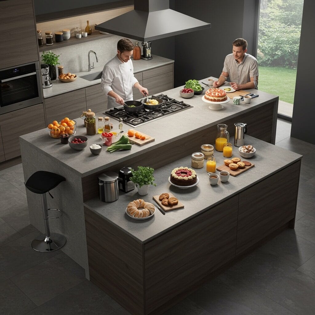 Create dedicated zones within your island with different counter heights for different tasks. A lower section might be perfect for kneading dough, while a higher area works better for food prep and casual dining.