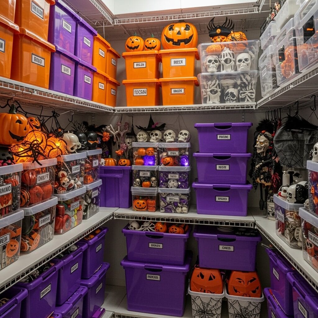Let’s be practical for a moment. Even the most beautiful Halloween decor needs to be stored for eleven months of the year. Smart storage solutions help protect your investment and make next year’s decorating process smooth.
