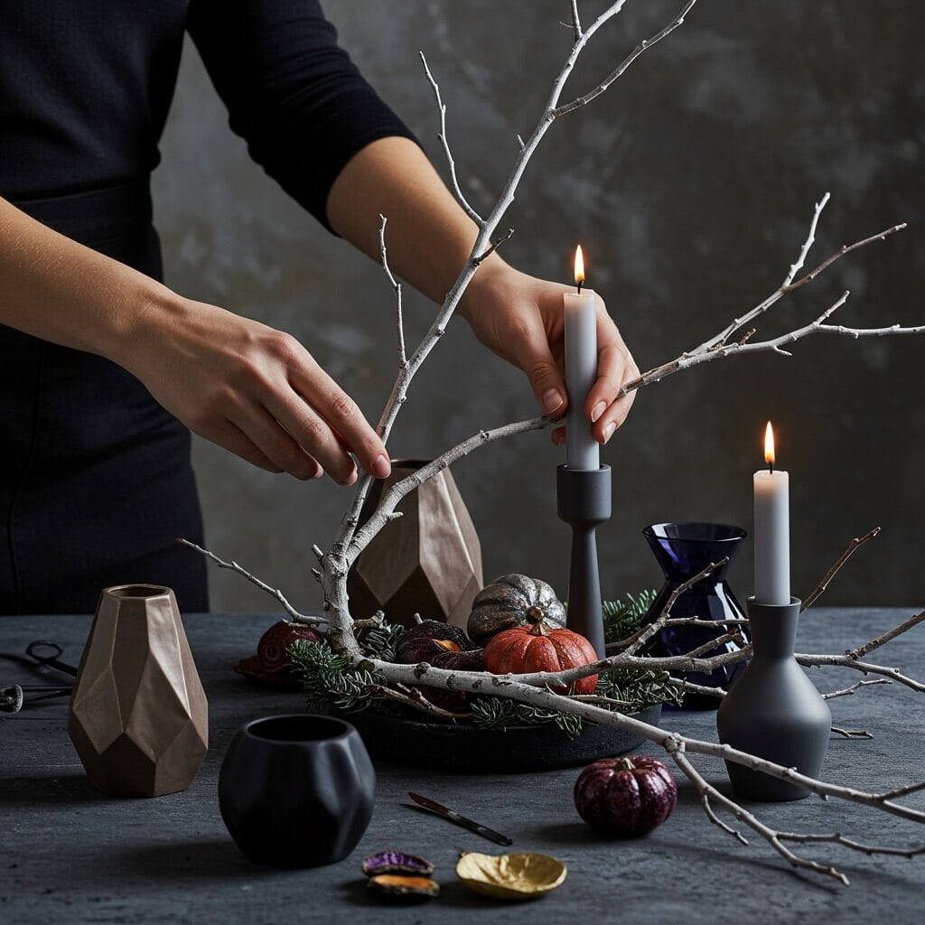 Black remains a Halloween staple, but use it strategically. Instead of plastic black cats everywhere, try incorporating black through natural elements like dark branches, charcoal candles, or matte black pottery. The key is making it feel sophisticated rather than costume-like.