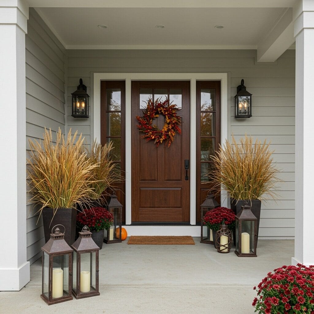 Large planters filled with seasonal grasses, mums in sophisticated colors, or even small pumpkins create beautiful autumn displays. Choose containers that match your home’s exterior style – sleek concrete for modern homes, or aged ceramic for more traditional spaces.