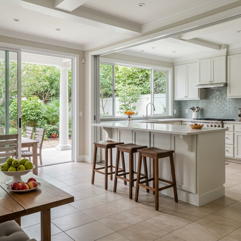 Modern luxury kitchens often blur the lines between indoor and outdoor living spaces. Large sliding doors, pass-through windows, and outdoor kitchen extensions create seamless entertaining environments.