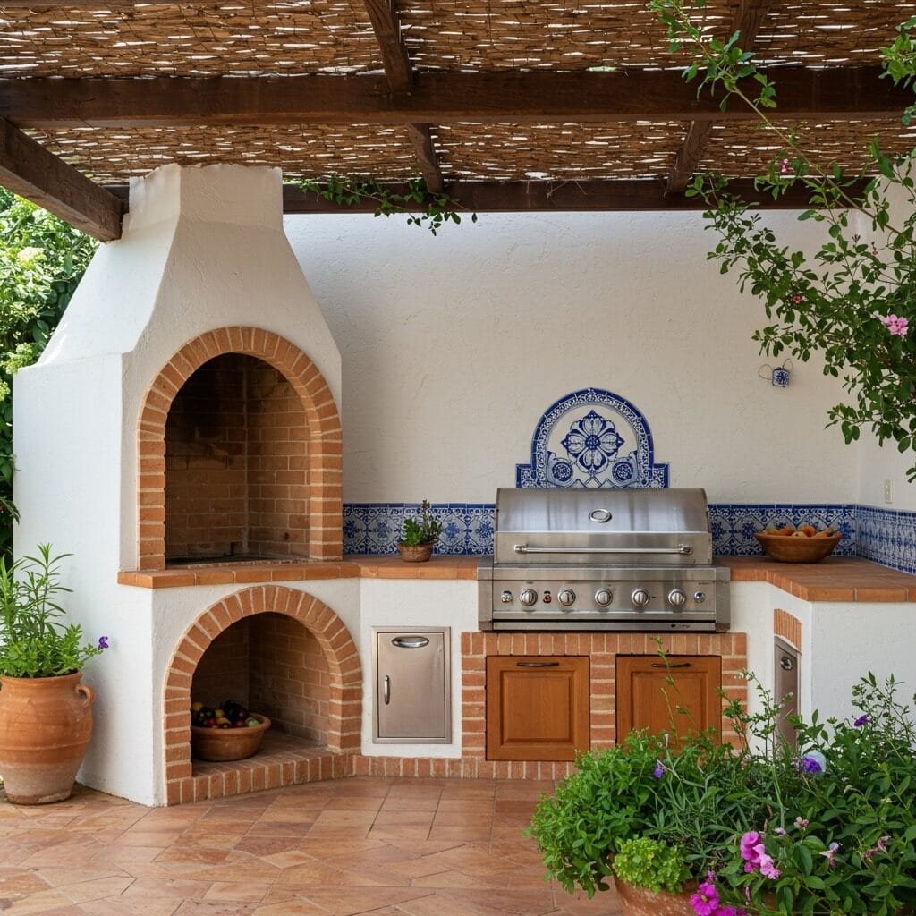 Integrate herb gardens directly into your design – nothing says Mediterranean like fresh basil, rosemary, and oregano growing right next to your cooking area. The combination of functionality and beauty is what makes this style so appealing.