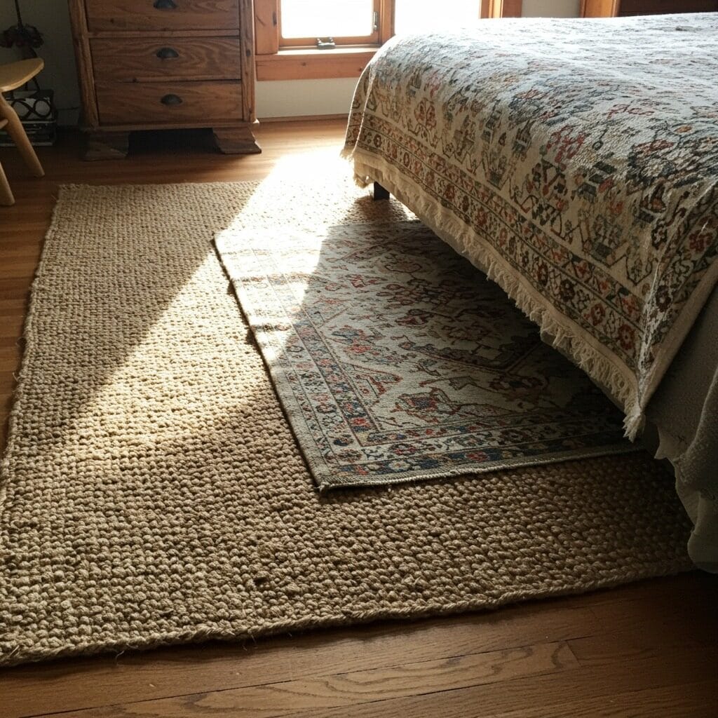 A large jute rug can serve as the foundation, with a smaller vintage or patterned rug layered on top. This technique adds depth while allowing you to incorporate different textures and subtle patterns.