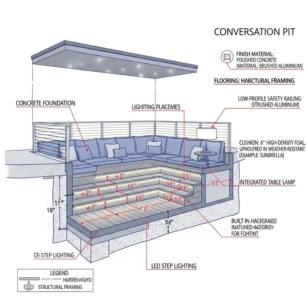 Not every home can accommodate this feature, and not every homeowner should attempt it. Structural considerations come first – you need sufficient floor depth, proper foundation support, and compliance with local building codes. Retrofitting a conversation pit into an existing home costs significantly more than including one in new construction.